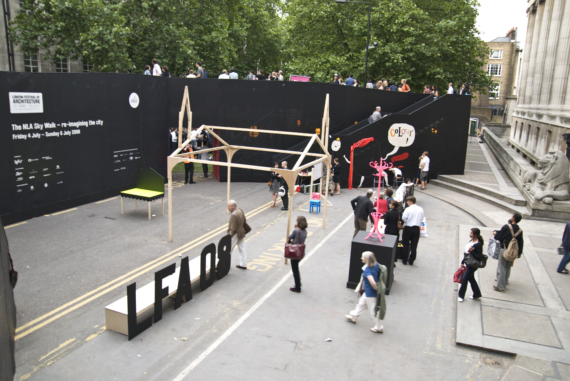 Returning for a third edition of the Festival, and this time with a programme spanning a whole month, the 2008 programme explored ideas of “fresh thinking, ideas, talent, collaborations and cultures”. Londoners and visitors alike and included street installations, exhibitions, guided walks, cycle rides, boat tours of the city’s river and canals, parties, design workshops, debates, breakfast talks, and weekend street markets. Introducing the idea of Festival ‘hubs’, each with a focus weekend curated by a built environment professional, key locations included: Kensington, Chelsea and Knightsbridge; Canary Wharf, Southwark and Southbank; Stratford and Greenwich Peninsula; Kings Cross, Clerkenwell and City of London and Bloomsbury and Fitzrovia.
