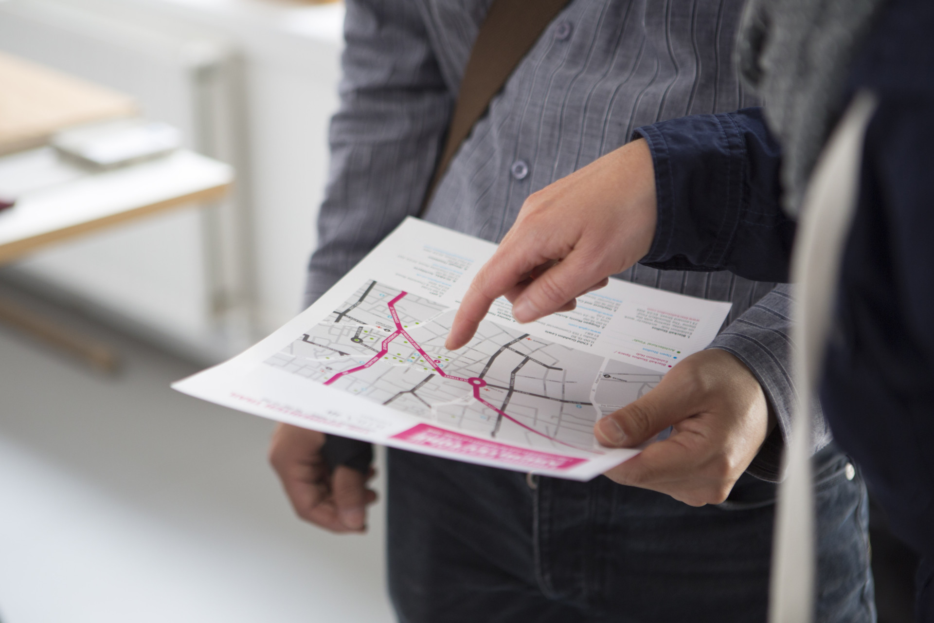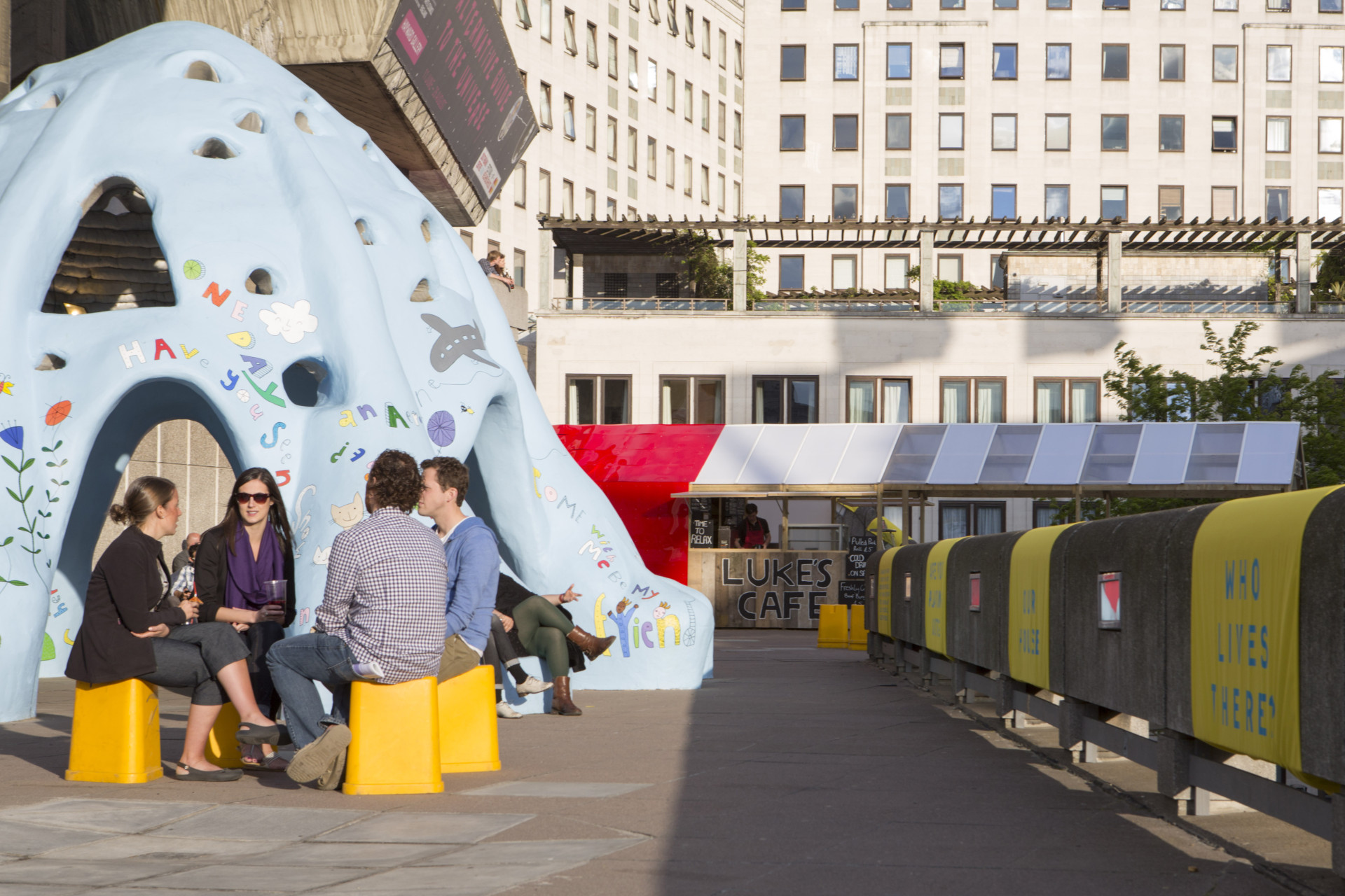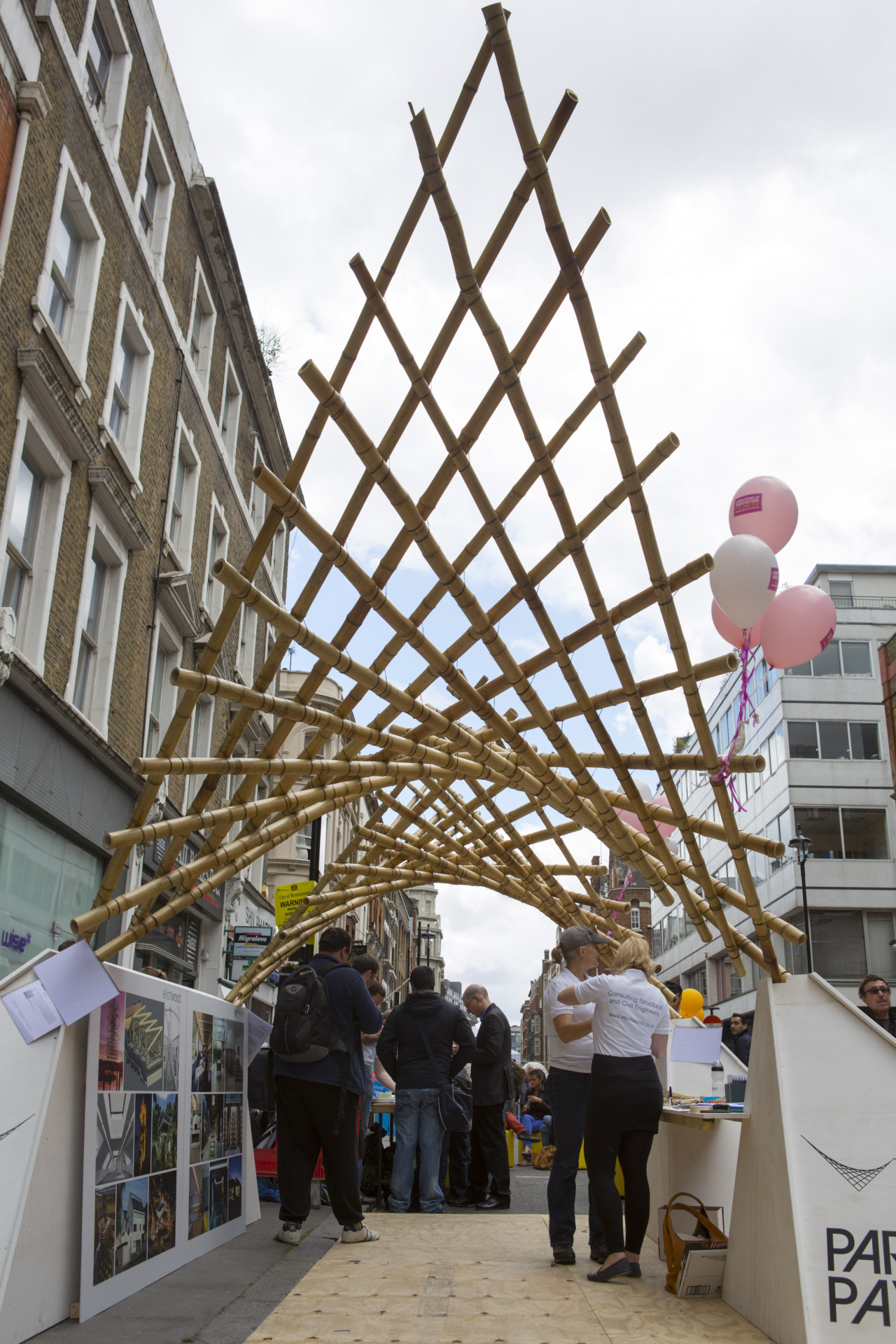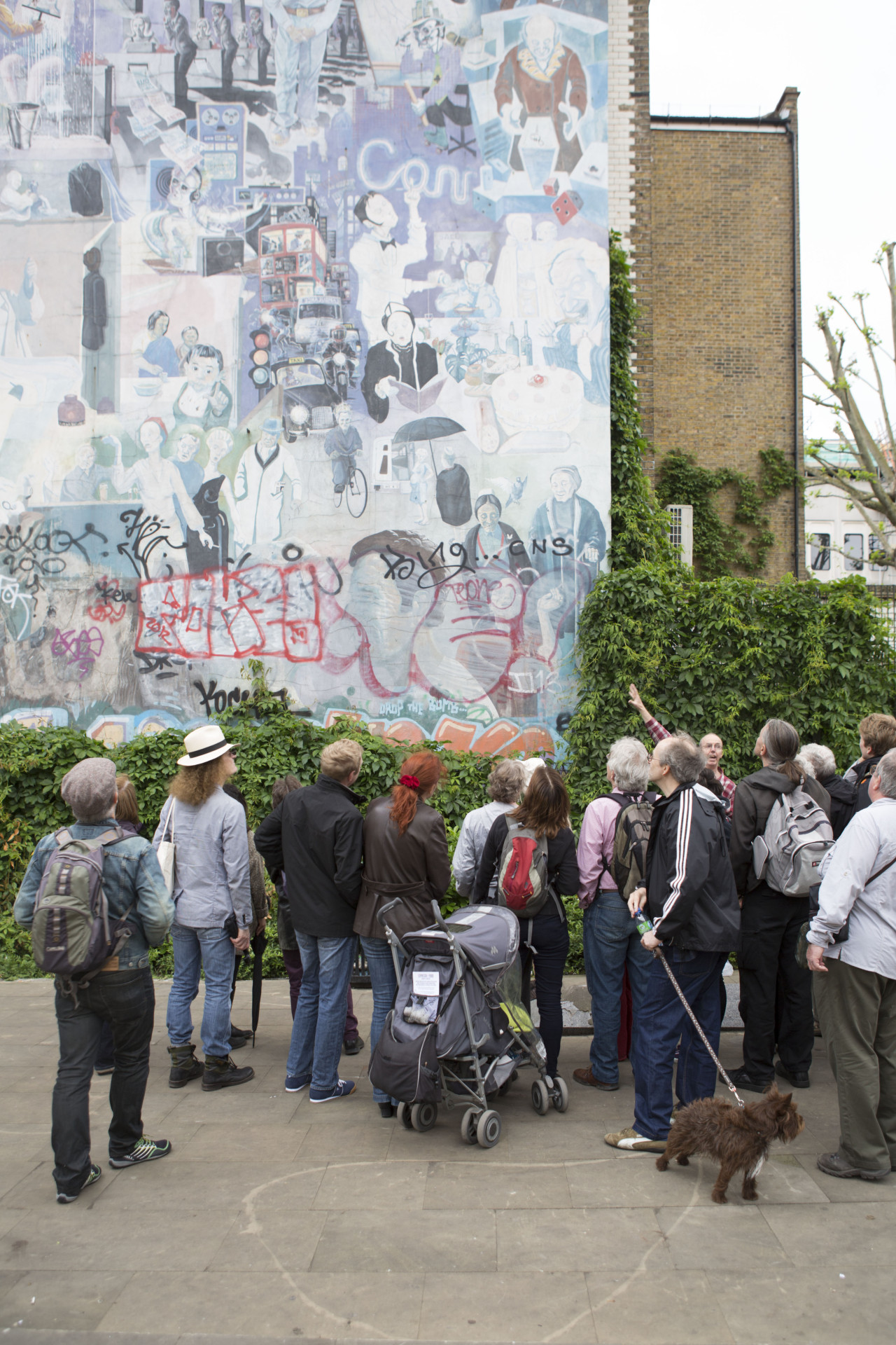 Commissioned by Barbican Art Gallery, Dalston House was created by Argentine artist Leandro Erlich for a vacant lot on Ashwin Street, Hackney. Highly playful and participatory in nature, Dalston House resembled a theatre set, featuring a full-scale façade of a Victorian terraced house. The façade was installed on the ground with a mirrored structure positioned overhead at a 45-degree angle. When visitors climbed on to the horizontal surface, their reflections in the mirror gave the illusion that they were suspended from or scaling the building vertically. Erlich designed and decorated the façade to evoke the houses that previously stood on the block and to question ideas of perception, representation and our experience of seemingly familiar architecture.