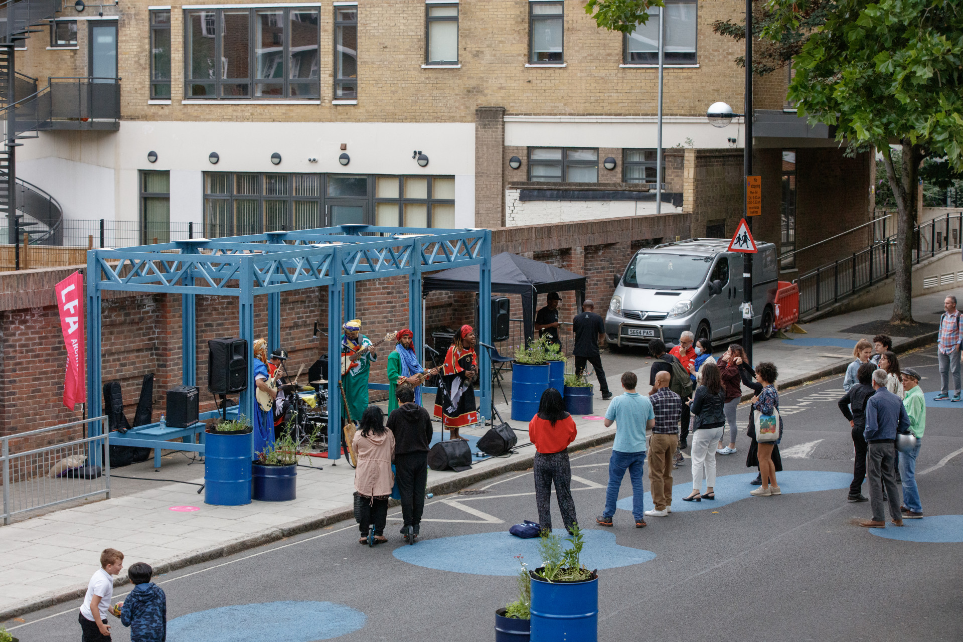 LFA2022 called for action from Londoners following a period of stasis during the Covid-19 pandemic. Centred around the theme of ‘act’ the programme examined how we can act for ourselves, each other, our cities and the environment. Following two years of digital-led content, organisers were encouraged to mobilise beyond conversations as well as re-think what architecture is, who it is for and how we interact with it. From poetry, dancing and communal dining on a pedestrianised stretch of road in Somers Town, promenade performances exploring Corbett Estate in South East to a day-long School of Activism in Hackney Wick and anything in between, the 2022 programme was experimental, daring and fresh.