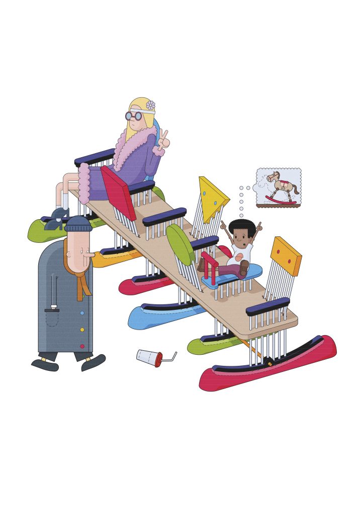ConvoStation is a brightly coloured communal rocking chair – intended to bring strangers together in today’s ever-moving and ever-busy lifestyles. The design incites a conversation between strangers, generates awareness of people’s surroundings through motion, and opens the opportunity for new friendships and chance encounters.