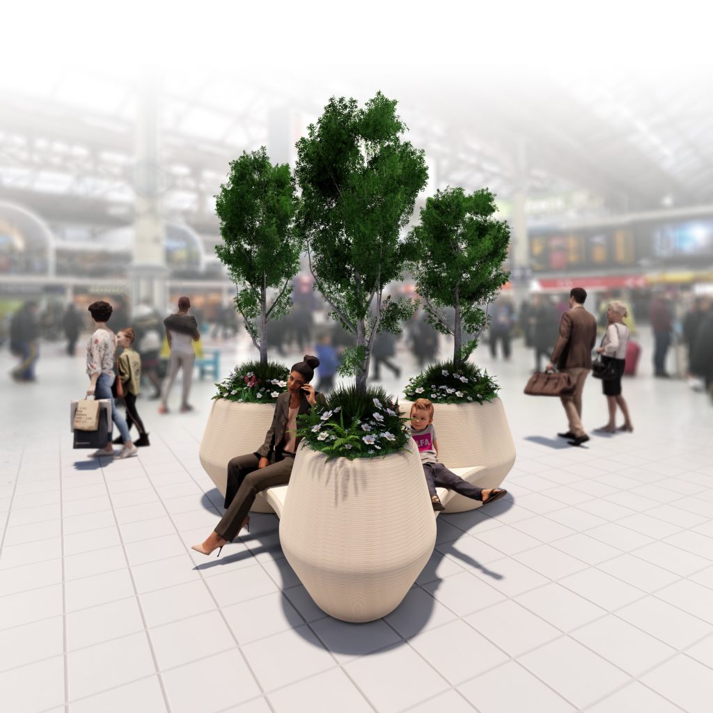 Nick Tyrer and Victoria Philpott have brought together seating and striking planting through a design that offers a spatial experience while remaining functional and comfortable. Lacuna offers a sense of security and personal space on a large station concourse, while also creating a much larger visual impact upon the identity of the station.