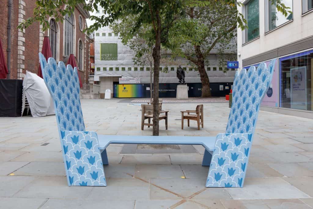 Designed in response to the social distancing rules imposed by the COVID-19 pandemic, The Two-Seater Rule provides throne-like seating that members of the City public can enjoy, while maintaining a safe 2-metre social distance.