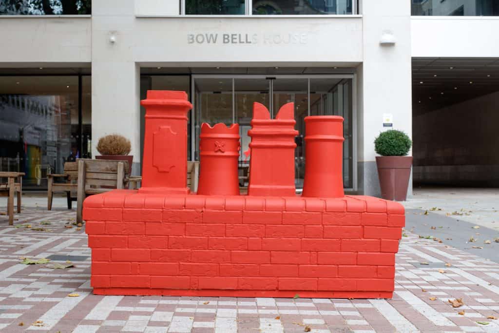 Chim Chim is a cherry-red brick bench that pays homage to British manufacturing and bricklaying history. Its backrest structure is made up of four individual chimney pot casts – provided by W T Knowles & Sons – one of the UK’s only remaining clay pot manufacturers.