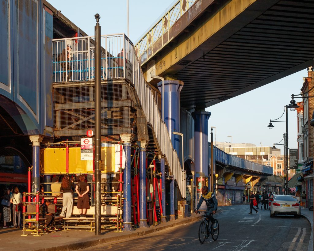 Each of the installations created new public spaces for Brixton residents to encourage conversation, connection and debate between individuals relating to the local area and its history, and the role that shared common land plays in their day-to-day lives. The installation’s scaffold structure reflects Brixton’s history as a site of change, while mirroring the transitional pop-up/pop-down nature of Brixton Village and its markets.