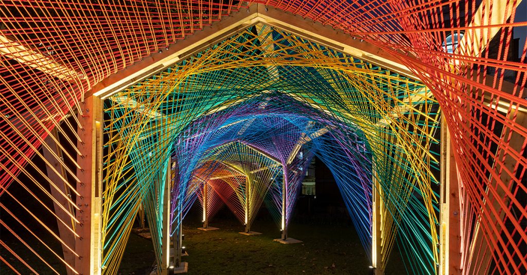 ‘Rainbow After The Storm’ is a colourful and interactive pavilion designed by a team of young architects working at Foster + Partners. Despite the cancellation of the 2021 Pride in London parade, the lightweight pop up was installed in September 2021, in the gardens of St Anne’s Church in Soho, celebrating the contribution of LGBT+ architects to architecture past and present. ‘Rainbow After The Storm’ was also in place for Inside Out Festival and the Soho Live festival, which is an official partner for the project alongside Westminster Council, the RIBA, and St Anne’s Church. ‘Rainbow After The Storm’ stands as a reminder that, for the LGBTQ+ community, Covid-19 is not the first pandemic of recent times.