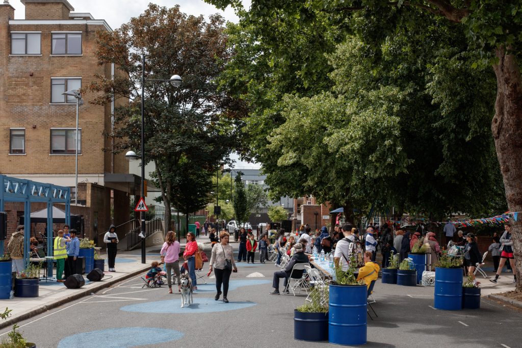 As an area of planned regeneration in the coming years with initiatives including the Greening Phoenix Road project (funded through HS2 mitigation funds), this temporary public realm intervention has provided a test bed for new ideas which look at alternative scenarios for the area. This June, Camden saw a vibrant, green, and vehicle-free space created on Phoenix Road and were able experience Somers Town in a new way and explore different ways in which the road could be used by the local and wider community.