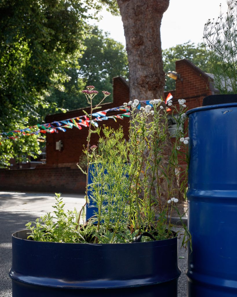 Phoenix Road reopened to traffic on Monday 27 June, but the main elements of ‘Phoenix Road Performing Gardens’ were left on the pavement, and re-used during the Somers Town Festival on 9-10 July 2022.