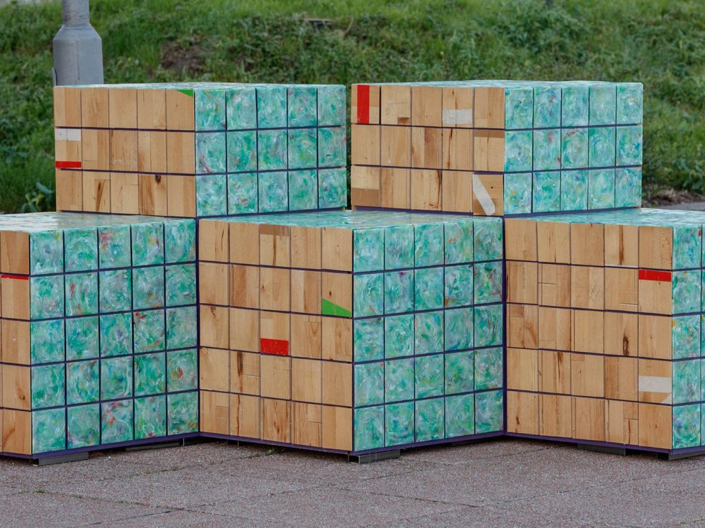 Exploring creative and playful ways of reinterpreting waste materials, From Trash to Treasure is adorned with timber tiles that share the opinions of young people living in the area, gathered in a workshop with students at UTC.