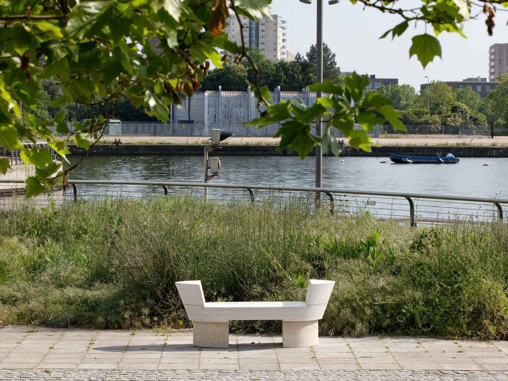 This year there has been a particular focus on engaging with the community around the Royal Docks to inspire and shape the designs. One bench design team partnered with UTC College, where the architects worked with students to give them the agency to have a voice as to what they want in their local area. Designing a tile that responds to the question: “What do you want for the future of your local area?” Another of this year’s designers ran workshops with local community groups to record their memories of the area in a clay tile, to be displayed upon the bench as a public gallery.