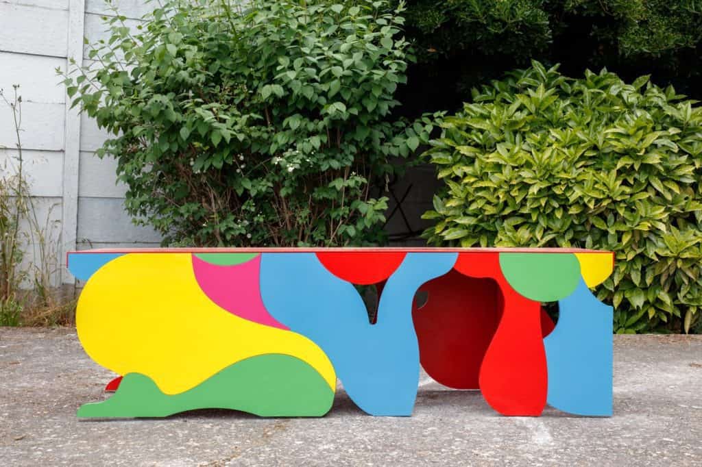Together We Hold celebrates women standing together in the face of violation against them and their bodies. Four figurative women form a joyful and fluid ensemble of bench ‘legs’ that support the bench structurally, as well as its sitter. The bench’s playful form and bright colours create a collective moment of joy in Lyle Park for passers-by to engage with.