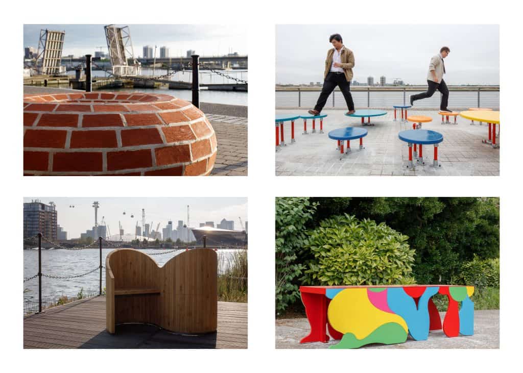 Clockwise from top left: FLOAT by Akasaki Vanhuyse; Round the Neighbourhood by Nicolos Makatsaria and Jericho Cabalan; Together We Hold by Akmaral Khassen; Chit Chat Chair by Studio Groove. © Luke O’DonovanThe London Festival of Architecture (LFA) and the Royal Docks Team (RDT) have revealed winners of the fourth edition of the Pews and Perches design competition, which sees a series of bespoke public benches delivered throughout the Royal Docks this year.