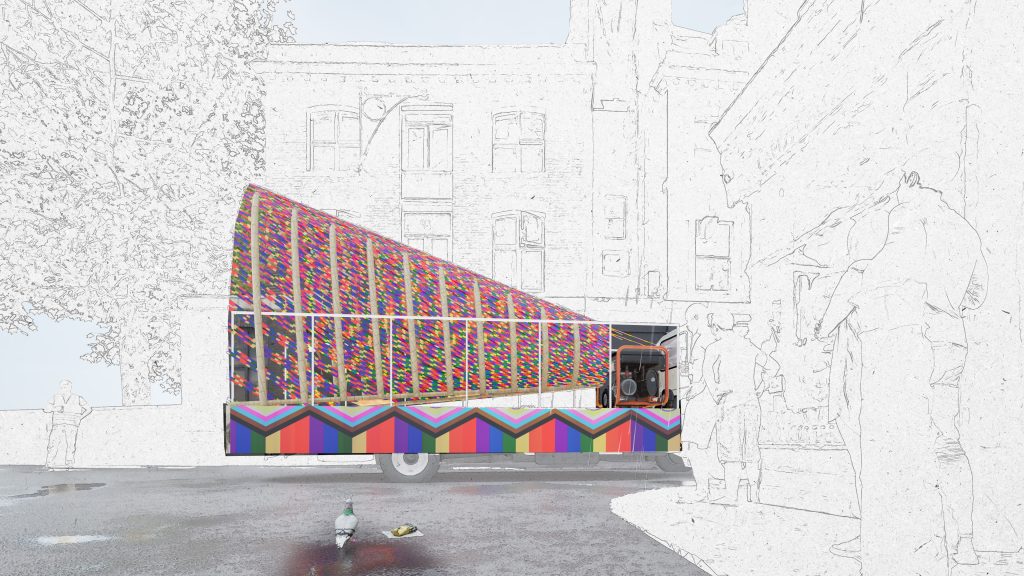 Chosen for its compelling interpretation of LFA’s 2025 theme, Voices, Proudspeaker transforms the parade float into a vibrant symbol of unity, visibility, and protest. It calls attention to the ongoing need for representation in the architectural profession, turning the act of moving through the city into an act of defiance and celebration.