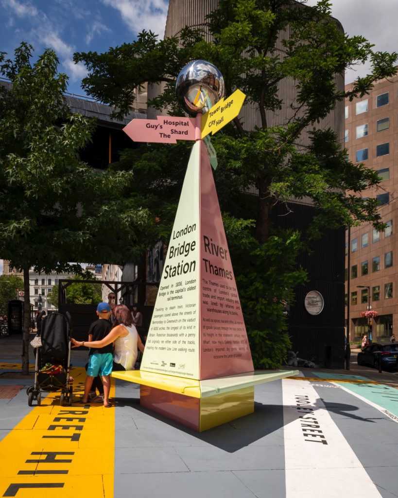 “The Tooley Street Triangle is a beautiful object, a meeting point, a source of historical information and a map to explore some of our quieter routes to the river, Tower Bridge and Borough Market. Located adjacent to the site of the original London Bridge, this busy small space has been confusing and underwhelming for visitors over many years, but will now help people walking through this historic area. As the health crisis restrictions ease, we hope this beacon will be a symbol of renewal and recovery now London Bridge businesses are returning and open for business.”