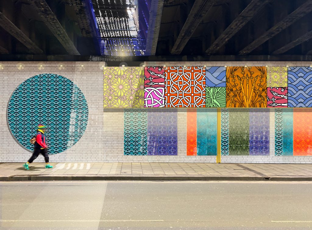 The underpass will include a ‘Memories of Wandsworth’ wayfinding wall, curated from stories and artwork gathered through community walking tours and workshops. This installation will highlight beloved landmarks and guide residents and visitors through the neighbourhood, reinforcing local pride and identity. The gallery wall designed by the community, will capture and feature vibrant colours, reflecting the energy, diversity, and spirit of Wandsworth.