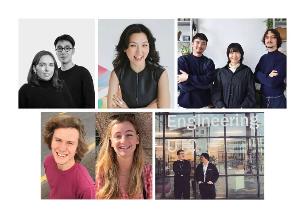 The winning teams (from left to right): AKASAKI VANHUYSE, Akmaral Khassen, PAN- PROJECTS, Studio Groove, Jericho and Nicolos (a student team from LDE UTC)
